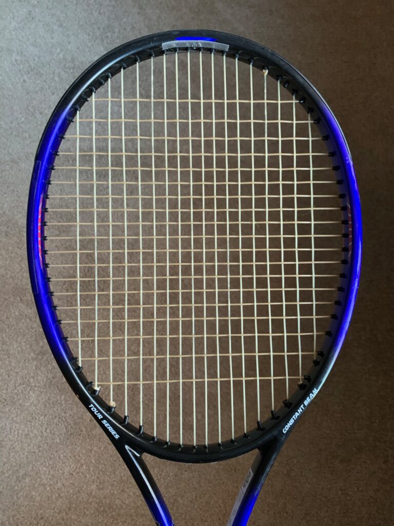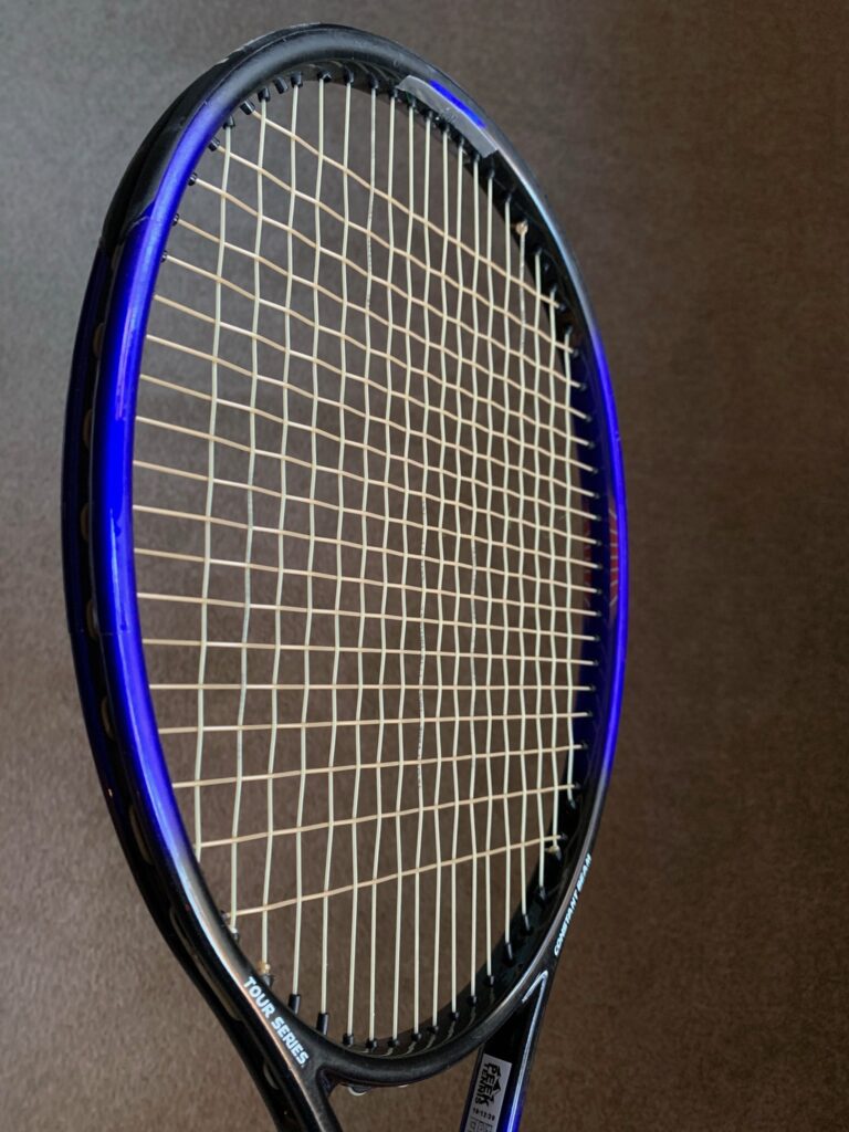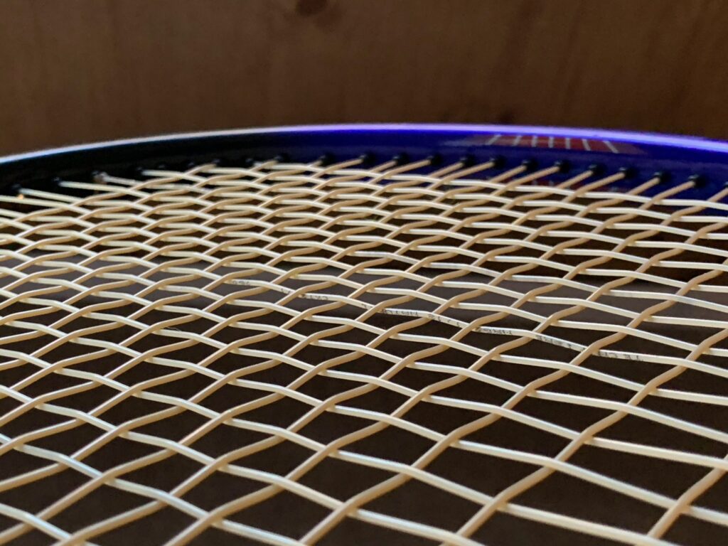 In the crosses is Natural PEEK. It’s softness and smooth surface allow those main strings to impart lots of spin on the ball. And its softness is nice and easy on the arm. It’s an amazing compliment to the power and stiffness of the nylon mains.